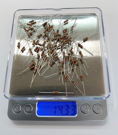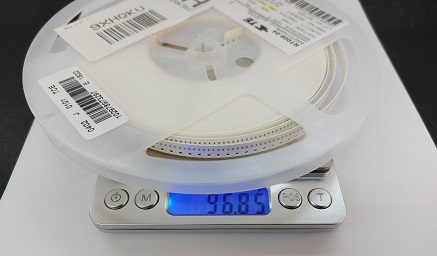 ![]() 特にバラ部品に有効な方法ですが、部品の重さでカウントすることができます。 まずは、部品1個の重さを測ります。 (軽い部品の場合は測定誤差を小さくするために、10個の重さを測って1/10する方が良いでしょう。) その後に全ての部品の重量を測定し、1個の重さで割り算すれば部品数を計算できます。 部品ごとに重さのばらつきがある場合は多少の誤差が発生しますが、普通はほぼ誤差なしでカウントできます。 カットテープの部品にも応用できそうです。 ![]() ▲リールの重さでのカウントは、できなくはないと思いますが、精度の良いはかりが必要になりそうです。