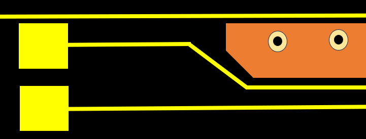 (1) はんだ付け性 上でも述べましたが、ベタには放熱効果があります。 はんだ付けの際、はんだの温度やランドの温度が上がりきらず、はんだ不良にならないよう気を付ける必要があります。 はんだゴテでの実装時はもちろんのこと、フローはんだでも同様の現象が起こります。 また、リフローはんだにおいては、部品が斜めに実装されてしまったり、マンハッタン現象(部品が立つ)が発生する 原因にもなります。 サーマルランドを使うなどして、はんだ付けにも考慮したアートワーク設計が必要です。 (2) 誤動作 大電流を扱う基板においては、一概に全面ベタにするのは避けた方が良い場合があります。 大電流が流れたときにGND内にわずかな電位差が発生し、デジタル回路や微小電流を扱う回路に影響を与え最悪の場合 誤動作することがあります。 良く行われる手法として、大電流回路とデジタル回路のベタを分離し(それぞれの回路でGNDベタを持つ)、 2つのベタをごく小さい1点で接続 するという方法があります。 これによって、大電流による電圧降下があったとしてもデジタル回路への影響を最小限にとどめることができます。 ただし、闇雲に大電流回路とデジタル回路のGNDベタを分離してしまうと、反対に影響が大きくなることもありますので、 シミュレーションや実機での評価を踏まえて選択する方が良いでしょう。 (3) 基板の反り 片面ベタなど、基板の表と裏で銅箔が不均一になると基板が反りやすくなります。 両面ベタとし、表と裏の銅箔残存率を均一にすることをお勧めいたします。
