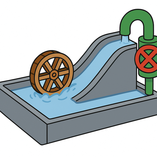 これをイメージするために、以下のような水流モデルで考えてみます。