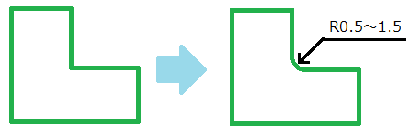 4.1.4 外形加工・基板の角部は他基板へのスクラッチ防止、使用者の怪我防止のためにR0.5mm程度に丸める場合があります。