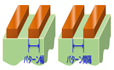 (青色:ノンスルーホール、緑色:銅箔パターン(レジスト塗布不問))