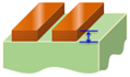 ICのランド(パッド)間など、レジストが塗布されていない銅箔同士の距離です。 基本的に最小クリアランス(最小絶縁距離)と同じですが、半田ブリッジ等を防ぐために更に余裕を持った設計をお願いいたします。 推奨値: 0.20mm(銅箔18um/35um) / 0.30mm(銅箔70um) / 0.40mm(銅箔105um) 表面処理がはんだレベラーの場合、はんだブリッジが発生する可能性がありますので上記推奨値で設計をお願いいたします。また、はんだレベラーにおいて、辺の長さが5mmを超えるようなパッドや直線以外で対面するパッド、並行した信号線にレジスト塗布しない場合などについては、はんだブリッジの防止のため、その形状に応じてクリアランスを十分に確保いただけるようお願いいたします。
