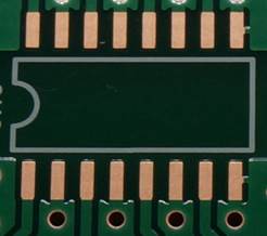 3.6.4 シルク禁止領域レジスト開口部および周囲0.05mm以内はシルク印刷できません。 ノンスルーホール・スルーホール周辺0.1mmはシルク印刷禁止とします。 また、基板端から0.3mmの範囲、ランド(パッド)から0.3mmの範囲は印刷できない場合があります。 特にランド(パッド)周囲0.1mm以内にシルク印刷を行う場合、シルク印刷ズレ、シルクインクの滲みなどによってランド上にインクが載る恐れがあります。ランド周囲にシルク印刷される場合は、上記リスクを許容の上おこなってください。